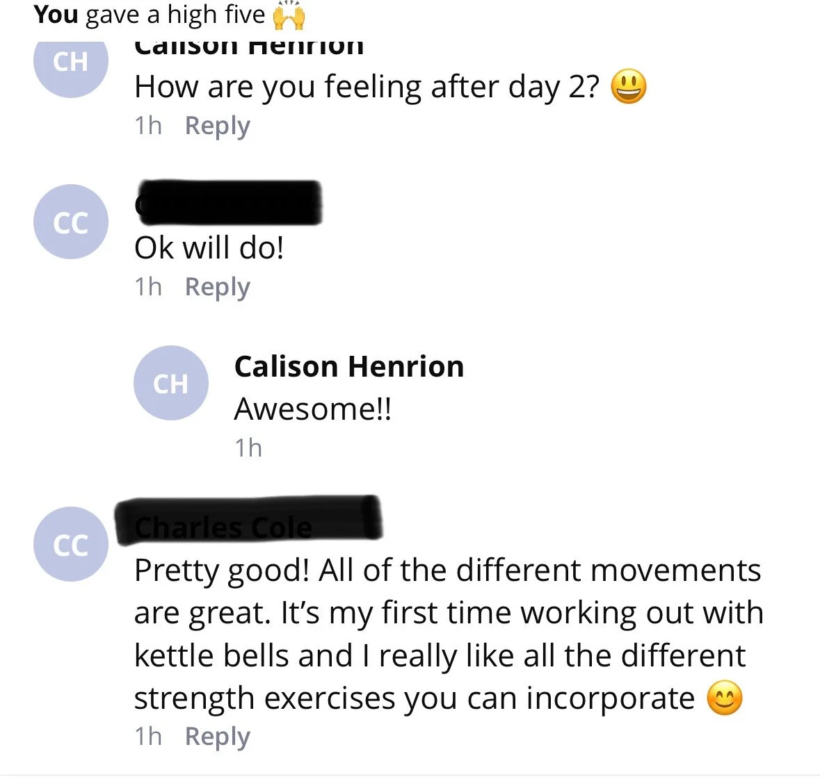Private messaging with coach.